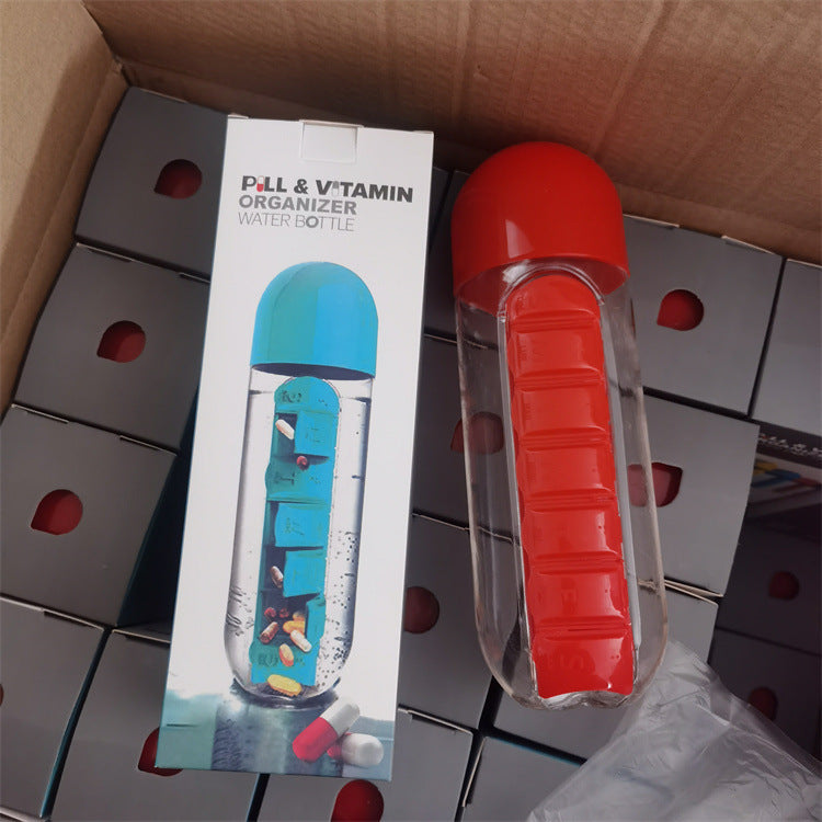 Two-in-One Medicine Bottle, Water bottle with medicine box, 7 compartments, Outdoor portable